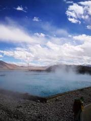 太美了,羊八井温泉是我这次西藏之旅的意外收获。冬天,温泉从地下涌出,蒸汽绕绕,配着蓝天白云,雪山,寒风阵阵,别提多惬意了。泉水含丰富矿物质,滑滑的,温度正合适,非常享受的一次体会。景区门票126元送泳衣,说实话,要不送泳衣我就不去泡温泉了,因为不在计划之列啊!我觉得很值。身体条件好的可以带上吃的,在那泡一天。但我高原反应还挺厉害,泡了一个小时就感觉体力不行了。匆匆结束了这次美好享受,那也知足了。