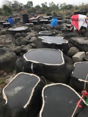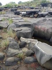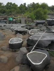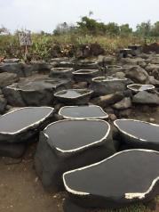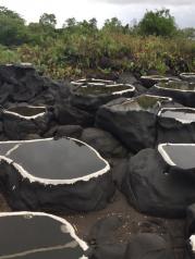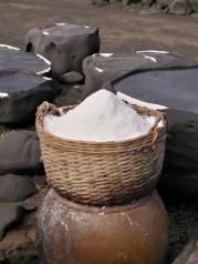 千年古盐田位于海南洋浦半岛盐田村,盐工们根据海南岛高温烈日的特点,改变过去“煮海为盐”的方法,用经过太阳晒干的海滩泥沙浇上海水过滤,制成含高盐分的卤水,再将卤水倒在石槽内,经暴晒制作成盐巴。