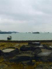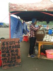 千年古盐田的门票是免费的,值得一去,谁能想到,在宽阔马路高架桥别墅区的海边,还保留着这么一片原始的山村,我们来早了一天,潮水将淹过我站着的这片盐田,待明早潮水褪去,海水会留在沙坑里,村里人会热闹起来收集被海水浸过得沙子,过滤,铺在晒石上晾晒,经过四天,白花花的老盐巴就形成了,千年人类智慧的结晶,有兴趣可以农历二十早上来看村民收盐的热闹场景。