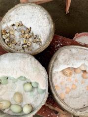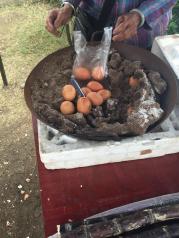 这个千年古盐田保存完好,不只是简单保存下来了,而是一直都在正常生产海盐。盐田里那些大小不一的黑色晒盐盘,都分属各户村民所有。有些村民在自己的盐田里摆卖海盐和盐焗鸡,价格不贵,一只50元,味道还行,景点免费,游客也不多,很值得一看!