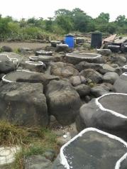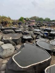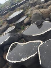 千年古盐田位于海南岛市白马井镇附近的洋浦开发区,经由白马井镇的开源大道上洋浦跨海桥,下洋浦大桥泓洋路路口右转或嘉洋路,即进入小路通往,盐场由一大片形态各异的玄武石形成,透着自然和古朴,总的来说非常值得一游。