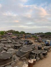 千年古盐田整体不大,是一片开阔的滩涂,是免费的。一路走向大海,路边都是当地居民的小摊子,主打盐焗鸡蛋鸭蛋,盐焗鸡,鲜椰子水这些。景区有好多晒卤水的大石头,已经被磨平表面。这就是主要景点内容了。海边也算安静,工业气息不浓,随意走走,放松心情,挺不错的。
