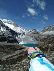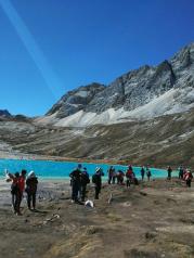 牛奶海太漂亮了,就是一路太辛苦,有高反的不建议。完全考验体能和意志力。从洛绒牛场徒步往返10公里,前2公里路好走,后3公里崎岖上山路,极其难爬,再加上高原缺氧,困难可想而知。