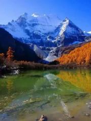 在稻城亞丁景區,神山仙乃日腳下有一個湖水幽藍、鮮花圍繞的聖湖——“卓瑪拉措”,海拔達3980米。珍珠海在藏語中稱為“卓瑪拉措”,是由仙乃日的融雪形成的,其面積約為0.1平方公里。密林中的珍珠海,猶如一顆鑲嵌在蓮花寶座上的綠寶石,碧波蕩漾,粼粼波光中透出無限清麗。湖畔四周,層林盡染,青翠如屏。湖水倒映著五彩斑斕的世界,令人目眩神迷。