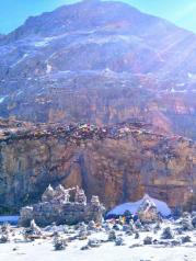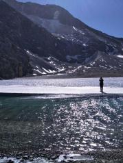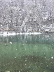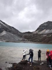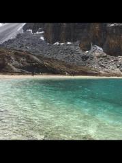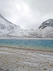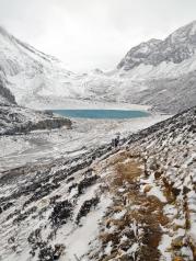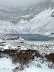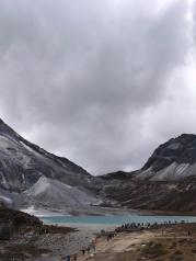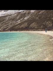 牛奶海——山上的天气很坏,风像刀子一样把雪往脸上打,很疼。即使这样,我们还是互相鼓励着艰难前行,终于前方出现了牛奶海的身影之所以叫牛奶海,似乎是因为春天雪化了之后,会在湖边形成一圈白色的矿物质,像镶了一圈牛奶的白边,不知是真是假我们稍作休息,就继续从牛奶海右手边的小路上山前往五色海