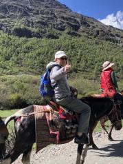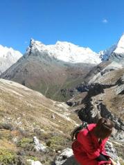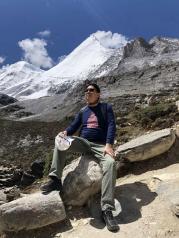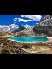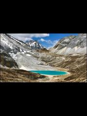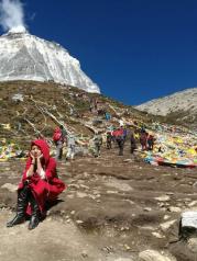 牛奶海——这一刻真的要记录下来 从海拔2600米的酒店开始, 乘车到达3600米山脚,骑川马3.5公里到达4000米, 靠双腿走了1.5公里,到达4800米的牛奶海 (一块净土)。花一小时再攀300米,成功爬上5100米的山峰,在五色海的衬托下,欢跳!