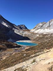 蓝色星球上最后一片净土—稻城亚丁,挑战高海拔徒步,从海拔4150米的洛绒牛场,到4600多米高的牛奶海,途中天气瞬息万变,刚刚晴空万里,突然雪花飘飘,忽而雪米洒落……在轻微高反的情况下,偶尔吸几口氧气瓶,放慢脚步行走,虽没能遇见最美的牛奶海,此行算是了无遗憾!
