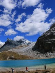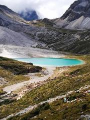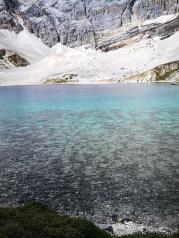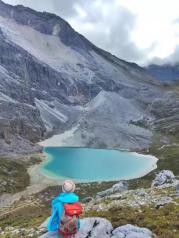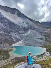 牛奶海——既然打定主意,就勇往直前吧,进去景区,迅速电瓶车直冲洛绒牛场,直接加入登山队伍,道路的确蛮难走,有些路段十分陡峭,加上偶有湿滑。不过最终还是见到了牛奶海,那是纯粹的干净,一尘不染的美。绕了一圈拍照无数。一个往返六个多小时,但还是颇为满足。