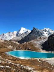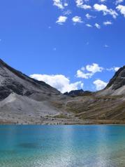 牛奶海 去牛奶海的路,既是一场自我挑战,也是一次自我修行 一路缓慢上升的碎石小路最终指向海拔4500米的高度,不知道有多少人能徒步坚持到终点。 当怀揣着如鼓擂的心跳来到牛奶海边,看着那被雪山环绕的湖水,从岸边的棕色、鲜绿色,向里过度到蓝色,越接近湖中心,颜色越碧蓝。 我沿着湖边走着,心也渐渐的平静下来,感觉自己也进入了一处宁静之地,仿佛此刻这世间,只有这山,这海,也只有我。