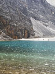 牛奶海太漂亮的,雪山下的湖泊清澈干净,成色特别的好!很有缘份的碰上了雪崩,也算是震撼,山顶有大风冰雹,所以还是注意保暖,不要只看美景