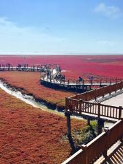 盘锦红海滩的红色是一种植物织的颜色,是大自然孕育的一道奇观。如果是在十月份,颜色更加鲜艳动人。 红海滩的最佳游玩时间,是十月份,它不光是旅游的好地方,还是摄影采点的绝佳地点,随处一拍都是大片