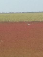 10月4日报了盘锦红海滩当地一日游 玩的时间充裕 人不算多 就是景色接近栈道的海草已经枯黄 指甲盖大的螃蟹稻田里遍地都是 适合代孩子来 附近没有东西可购买