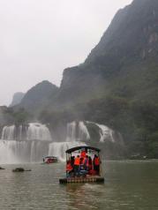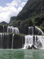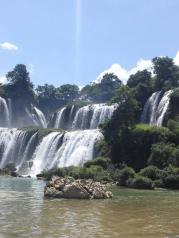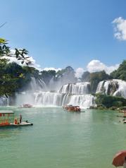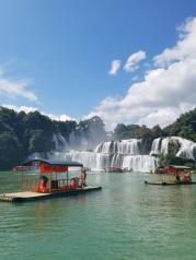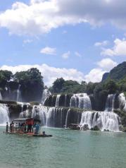 德天瀑布山青水秀,田园风光,瀑布落差大,阶梯状,层次分明,立体感强。有点遗憾是瀑布下边游船太多影响观看和拍摄。瀑布壮观!美景如画!越南产品物美价廉!路程实在是太远,冲着名气去的,水量还可以,还不错吧。