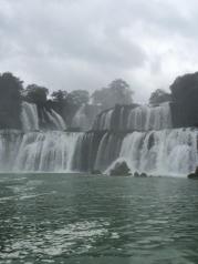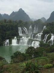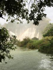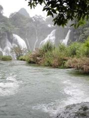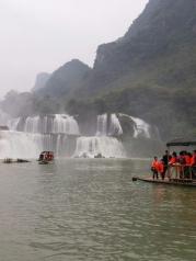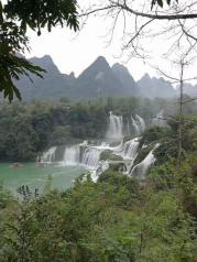 4月7日去德天瀑布的,枯水季水量也很大。上午十点到景区,游人并不多,得以从容赏景留影。自驾车可一直开到景区入口门外,有当地乡民的停车场,能容纳70-80辆车吧,但购票是在离景区8公里外。不错的地方,名副其实的漂亮,景色很壮观。游览过程中遇到阵雨,加大了水量,小朋友玩的很开心。对面是越南,很多人划船来做生意。