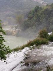 广西的四月三之行贡献给了德天瀑布,那天下着小雨,装备也是买了个齐全,防雨鞋,雨衣,雨伞,但是后来发现完全没有必要。其实觉得花30元钱坐个竹排还是有必要的,可以跟瀑布亲密接触。很方便,用二维码直接入园,不需要另外买票。实用!