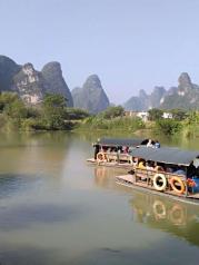 明仕田园是和竹筏漂流一起的。 我们先在庄园隔壁的饭店吃饭,一览美景,然后是竹筏漂流,观赏堪比漓江的美景还有导游在船上讲解。上岸后是明仕庄园,是花千骨的取景地,景色也很漂亮。全程两小时左右,凝聚广西的精华景色,很值得一游。