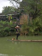 到明仕田园景区门口还不能直接取票购票,要坐免费接驳车到三公里外的竹筏乘坐点门口取票,到了窗口取票提供取票码就可以了,还是挺方便快捷的。进去后坐的是人工竹筏,坐一趟40分钟左右,也值回票价了,感觉撑竹筏的工作人员挺辛苦的,不像桂林那边坐的都是电动竹筏,时间较短。竹筏上水蚊子挺多的,建议大家抹点花露水、驱蚊液之类的。里面风景还不错,园子不算得大,拍照还是挺美的。