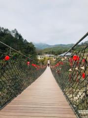 三月来丫山风景区游玩,景区分两个部分,不同地方不同入口,卧龙山和A哆乡村,门票也是分开两个部分分别游览。 我们住在枫夜里,就在卧龙山脚下,A墩乡村对面。 第一天下午逛卧龙山,坐观光车上山顶,车没有门窗的,很大风,一定要做好保暖。先逛玻璃栈道,全长300米。问了几个工作人员说走山路下山只需30分钟,事实我走了1小时40分钟,建议不喜欢爬山的朋友可以逛完玻璃栈道后,在下车的地方坐车回去。 第二天早上退房后,去A哆乡村,一早起来整个景区被雾气萦绕着。乡村门口进去首先有很多小孩玩的设施,只是全被雾气打湿了玩不了,建议下午去比较好。然后逛了空中的桥,绑满了红色的丝带很好看。接着到处逛看到有个篮球场,去到