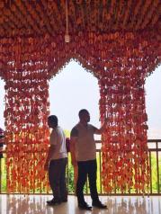 勐焕大金塔就位于芒市,在赤裸裸的太阳下,更显得光灿夺目。围着大金塔转一定要按顺时针,转上三圈,然后入殿看看,虽然不大,但是很有充满了异域风情。绝对值得一去的景点。很有宗教意义,祈福求平安圣地。