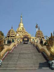 勐焕大金塔位于芒市的一座山顶上,是属于比较高的位置,站在上面可以看到芒市的全景,很漂亮,大金塔有缅甸等东南亚国家的风格,异域风情,大金塔有四个门,但是地方很小,票价的定价有点高了。真的好大一座塔呢,从远处看挺小的,越走进越大。因为对佛教不感兴趣,所以既没听讲解也没进佛塔里面看,只是绕着佛塔顺时针绕了三圈,图个吉利。