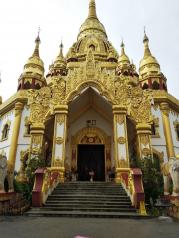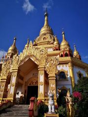 勐焕大金塔号称中国第一金佛塔,也是亚洲第一空心佛塔。 大金塔外面金碧辉煌,十分壮观。 大金塔一共有东南西北四个门,除了西门,另外三个门都是开放的。 进入大殿是要脱鞋的,所以从哪个门进,就从哪个门出。