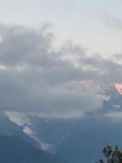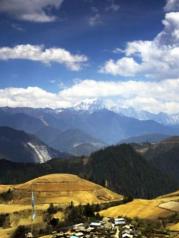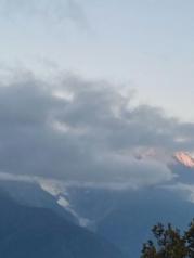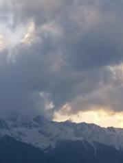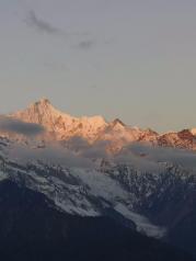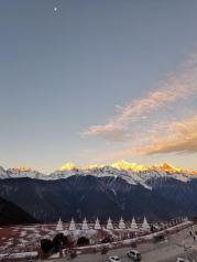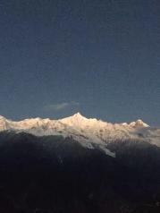 梅里雪山要看到日照金山是运气,云雾多的时候都是时隐时现。其实雪山很远,不必去飞来寺看也行的。对面很多酒店顶楼平台都能看到。这里的景色美如画,食物天然无公害,空气清新无污染,是个发呆的好地方。
