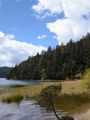 香格里拉不愧是真正的大森林,原始深林,走在这忍不住会想要多呼吸,抬头一个又一个的深呼吸,巴不得打点空气打包带回去~走在郁郁葱葱的森林里,草地边的小道上,好几次近距离的和小动物们擦肩而过,好几次看见了松鼠~