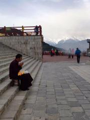 来香格里拉旅游几乎都住在独克宗古城里面,现在的古城是那年香格里拉大火后重新修葺的,古城外人很少。客栈老板是一位大哥哥,很好,提前帮我们在古城月光广场订了停车位,所以我们的车也得以停入古城内,拿取东西都很方便。