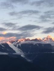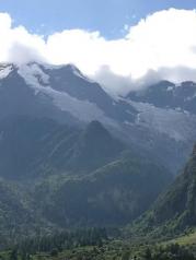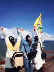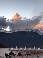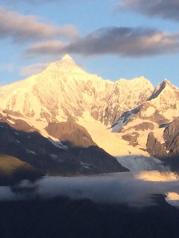 利用长假和家人、朋友一起自驾去了美丽的梅里雪山。途中在香格里拉时听人说起,能看到曰照金山的人缘比较好,而在8月能看到梅里雪山曰照金山的只有百分之一。既然已经决定了去,何况还有一线希望,我们毅然去了,终于不负有心人。第二天一早我们不仅有幸看到了日照金山,还有哈达云。太震憾了!白天又直达景区,先坐景区的电瓶车,又步行2.5公里的山路,到了观景平台,近距离的观看了冰川。