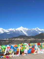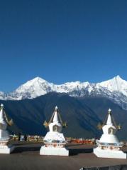 梅里雪山去过两次,第一次铩羽而归,什么也没看见。第二次下午到达飞来寺,阳光明媚,可以非常清楚地看到梅里诸峰,尤其是卡瓦格博峰让人惊艳。在这里其实无需买门票,旁边很多客栈房间里都可以看见。