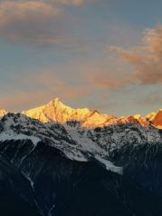 梅里雪山,没有亲眼看过它的人是无法体会这魅力的。冬季是看梅里日照金山的最佳季节,区别于夏季雪山脚下奔腾的金沙江水汽不断上升,主峰卡瓦格博经常云雾缭绕;冬日里气候非常干燥,有幸一睹神山真容,由粉色转金再转白,梅里十三峰一字排开, 真的非常漂亮。