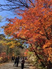 虎山长城我比较喜欢,不用坐观光车,走几步就考试登长城长,不太高,也不算陡,走走停停一个小时就到山顶了,长城边都是李子树,着手可得,到处一片绿色,并不枯燥。到了顶上,放眼朝鲜的田地,很漂亮。我觉得也不错。下山台阶很逗,扶着扶手慢慢走,这段路比较累,走到一半,给你两个选择的路。我们选择难走的路,都是山路,石头,不过离朝鲜也就更近了,绕着山,欣赏着朝鲜的美景,还真是美。大概再走半个多小时就下山了。总路程一共也就2.5小时,我们和老人就都下来了。