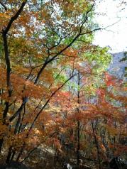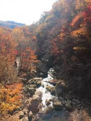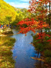 天桥沟国家森林公园在丹东的宽甸满族自治县,天桥沟最好秋天的时候去,枫林漫山遍野,可以看到桔红色、紫红色、桔黄色、绿色等色彩的枫叶