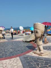 我们到金滩的时候是中午,太阳很大,但还是挡不住小朋友下海玩沙的热情。只是这个免费景点和这次旅程的其他沙滩比起来可能是最脏乱差的一个,海滩确实很长,沙不够细不够干净,海水浑浊。
