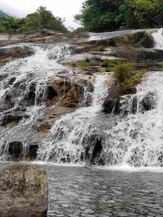 屏峰雨林的山又青水也清,一路上山,大瀑布小瀑布几十米就接二连三的出现,空气清爽,整个人都立马精神奕奕起来,山上隔一段路就有一个亭子,亭子里都有一位工作人员坚守岗位,保障游客们上山下山的安全,这点做得非常棒!