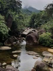 屏峰雨林是国家AAAA级景区,位于东兴市马路镇平丰村,水中的溪流从海拔900多米的罗华山蜿蜒跌宕而来,谷床全是洁净的花岗岩,千年流水冲刷,石头裸露了原色,殷红如血。建议穿运动鞋,防滑鞋,带瓶花露水。