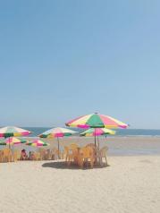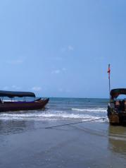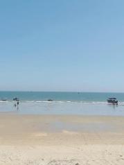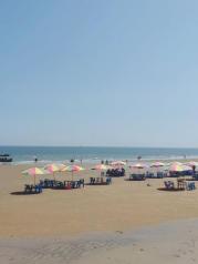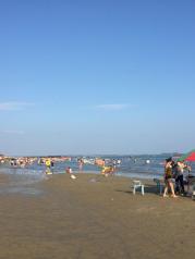 金滩非常适合开车去,从东兴市开车过去40多分钟,好像也有公交车。沙滩附近吃喝泳具全都有卖的,价格不清楚,我们都是自带的泳具,租伞100元。更换衣服加淋浴5元。海滩是黄色的沙子,超级细。退潮的时候还在沙滩上捡到了很多小螃蟹。