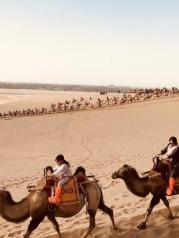 敦煌鸣沙山太值得去了,体验大沙漠。大家一定要租鞋套,否则沙子会进鞋子。骑骆驼是必须的,这次带79多岁的父母来,一起骑骆驼进去,要记得准备20元小费每人给牵骆驼的人,他会帮你一路拍照的。还有爬沙丘也是一定要体验的。