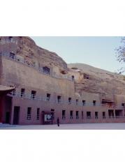 莫高窟著名的“九层楼”门口拍到此一游照,洞窟出于保护原则不允许拍照,所以买了一些明信片回来欣赏一下。总结如下:1.提前一个月预约了门票,按照预约时间提票进场十分便捷。2.安排观看的球幕电影《梦幻佛宫》,伴随佛教缓慢的音乐并且仰着脑袋看片,没几分钟就犯困,四下一看,左右前后的儿童全都睡着了,看完大人出来也纷纷伸懒腰揉眼睛。3.部分洞窟未开放,门口挂着牌子:今日二氧化碳超标。4.讲解员风趣幽默,使参观八个洞窟的过程不会枯燥无聊,听讲解过程自己做了简单的笔记。(淡季11.1-4.30可以参观十二个洞窟,不给敦煌靠近新疆哈密,冬天气温最低零下30摄氏度,南方人吃不消。)5.发现有几位坐轮椅参观的游客,