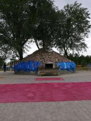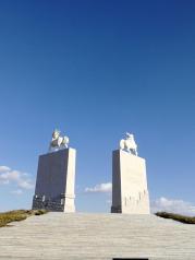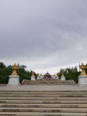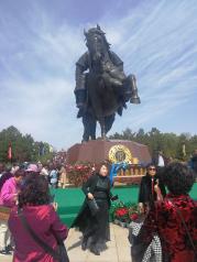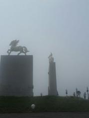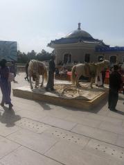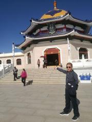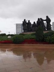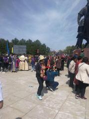 从内蒙古包头行车三个小时到鄂尔多斯,游览了成吉思汗园陵,园陵都是一样的,介绍加雕塑……全国各地几乎是千篇一律的,就是主人公不同……这时老天淅淅沥沥飘着小雨,加件外衣还感觉到冷,但是团队里团友们的互相照顾给了大家温暖!