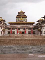 乌兰活佛府这是新开发的一个景点,周边的绿化还没完全搞好。虽然乌兰活佛2015年就已经进驻,但是,今天是2017年6月4日,我冒雨去看,里边的一部分还在装修之中,喇嘛没见到一个,游人倒是来了几个旅游团,还有自己开车来的,都是进去看看,主要的是照相。乌兰活佛府的建筑规模还是很宏大的,融合蒙汉臧建筑风格于一身。有6号公交去,但是,常常不去的,因为没人坐。鄂尔多斯市本来人就少,去到这些景点有点渺无人烟的感觉。不过,这么庞大的一个建筑,以后必成为鄂尔多斯市的重要景点之一的。