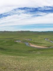 那个被誉为“天下第一曲水”的莫日格勒河。金帐汗蒙古部落也位于附近。 不同于上次来时的阴沉天,6月的莫尔格勒河畔已是草浪滚滚,野花盛开,马嘶羊咩。 莫尔格勒河以“曲”闻名于天下,蜿蜒蛇行的河水在广阔的陈巴尔虎草原从东北一直流向西南,经美丽的呼和诺尔湖汇入海拉尔河。河长319公里,可如果将弯弯曲曲的河道加起来,竟有上千公里。 来来去去,百转千回,莫日格勒河就像条飘落的柔软绸带,轻盈婉约,系在草原的腰间,流淌在呼伦贝尔广袤的草原上。 【莫尔格勒河】 景点位置:内蒙古呼伦贝尔市陈巴尔虎旗境内 交通 在著名景点金帐汗游牧部落旁,可乘去往拉布大林方向去的班车,告诉司机在“金帐汗”下车,金帐汗和莫尔格勒河可