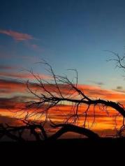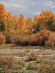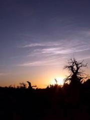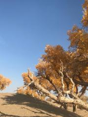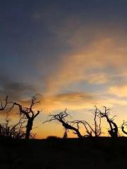 每年深秋,额济纳河沿岸一片金黄,层林尽染、神态万般。阳光照射下的金色树叶,映衬着湛蓝的天空,在风中婆娑起舞。落日余晖中,千年不朽的胡杨树,在夕阳下张牙舞爪、光怪陆离,让人心碎。