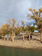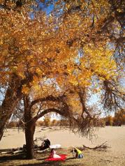 额济纳胡杨风景被列为中国十大勾魂风景之一。每年金秋十月前后是胡杨林的最佳观赏期,成片的胡杨如同无边的金色海浪,壮观而眩目,让不少摄影爱好者流连忘返,可是今天这样咋怎?我们是9月初去的胡杨林的书也还没有黄,现在还看不到震撼的金黄色。