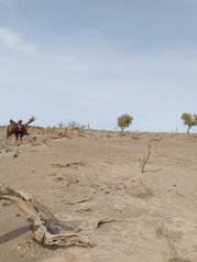 策克口岸在额济纳县城以北,中蒙边境。游完居延海,顺便看一下策克口岸,门票30元。策克是中蒙两国的重要通商口岸。口岸两侧,中国境内是比较繁华的小镇;蒙古一侧,看不到什么建筑,远望过去,似乎是无尽的草原或者荒漠。口岸有为蒙古国人设置的边贸市场,可以买到蒙古国的巧克力等糖果及工艺品。