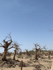 怪树林景区比想象中大很多,景区木栈道向四方延伸,一眼难以望穿插。沿着 木栈道前行,二旁干枯的胡杨树千姿百态,拟人似物,场面之大,有一种凄凉之美,不由让人感叹大自然的悲壮。