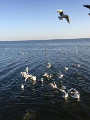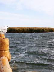 居延海这里的自然风光真的是非常原生态的,蓝天白云真的好美,有点像是湿地公园的感觉,这里的原生态保护地还行,沙漠中的绿洲。游客可以买专门的鸟粮,乘坐快艇出海,在湖面上投喂红嘴鸥,抓拍了几张,意外的效果不错。