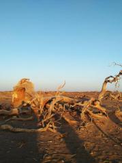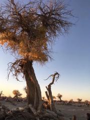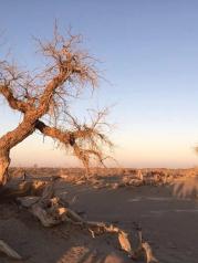 额济纳胡杨死后千年不倒,倒后千年不朽,就是看这的吧。大片枯死的胡杨林,用千奇百怪的造型努力在世间再挣一席之地,有点悲凉。落日时的怪树林更有味道。