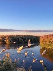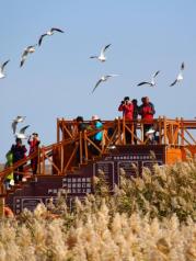 居延海绝美日出!四点过就出门出发,温度比较冷,不过看见美丽的日出也是值得的哦!海鸥非常美,可以体会到“落霞与孤鹜齐飞,秋水共长天一色”的感觉。芦苇很美,沿着栈道可以走到湖边,借着芦苇的前景拍日出很棒~