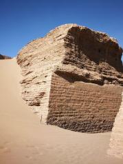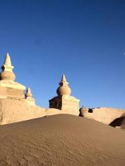黑水城是古丝绸之路北线上现存最完整、规模最宏大的一座古城遗址。黑城因水源枯竭早在14世纪中期就已成为沙海中的孤城残址了,周边地区沙化严重,流沙从东、西、北三面侵蚀黑城,许多遗址已埋于沙下。